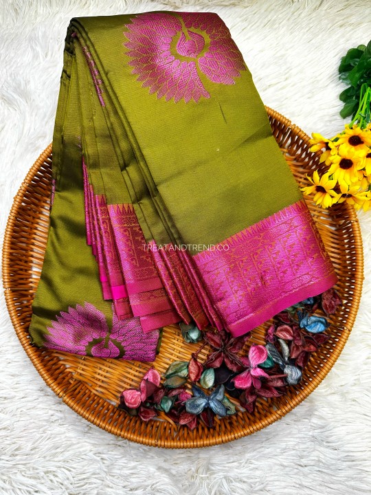 - Product Code: SOFT SILK - MUD GREEN MIX PURLE ZARI